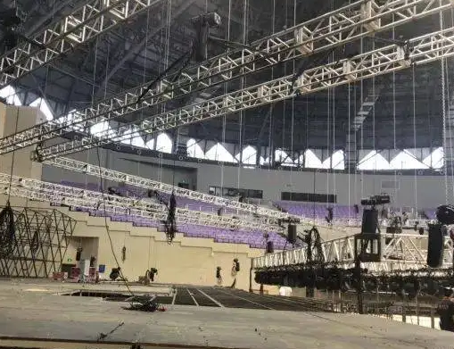 舞臺(tái)搭建部分,主要是由舞臺(tái)、燈光、音響、視頻這四大部分構(gòu)成,其他還有舞美、特效等。這些都是由成千上萬(wàn)個(gè)舞臺(tái)設(shè)備組合而成的,在裝臺(tái)和拆臺(tái)過(guò)程中舞臺(tái)電動(dòng)葫蘆表現(xiàn)得更為明顯,它的主要任務(wù)就是吊裝這些舞臺(tái)設(shè)備,不然僅憑幕后工作人員之力,是萬(wàn)萬(wàn)不能在短時(shí)間內(nèi)將這些設(shè)備安裝到位的。